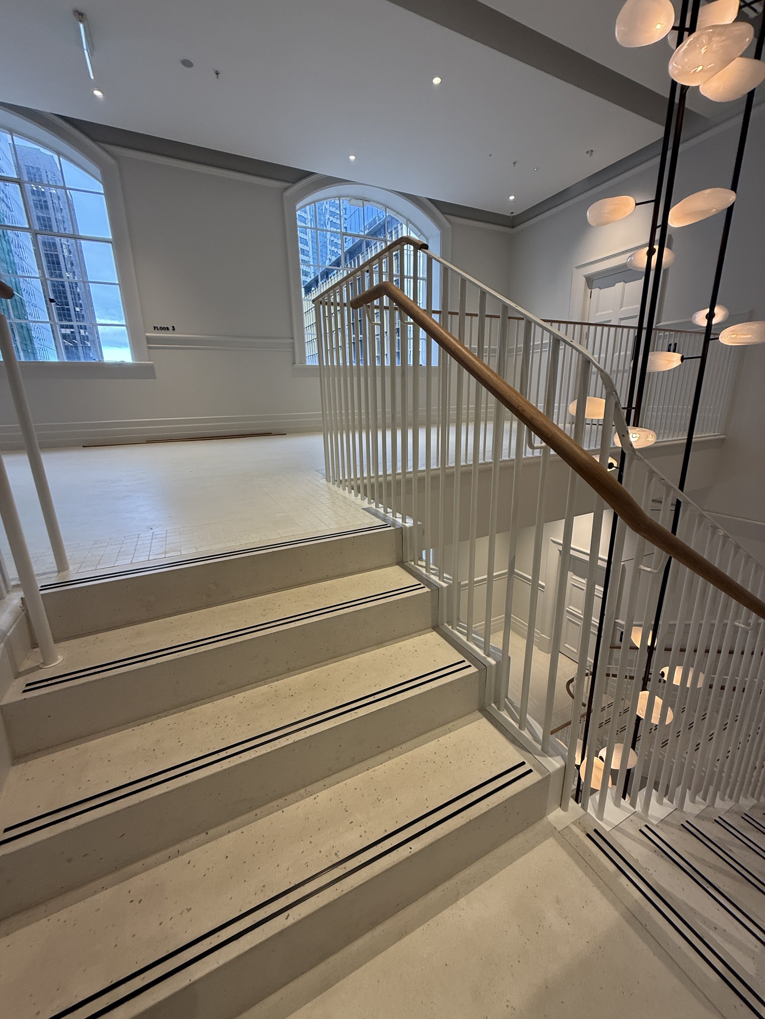 In this project we were working with a heritage building and existing stairs. The challenge was that every stair was different. Stair treads were precast to match the insitu flooring we laid on the landings. The end result is exquisite
